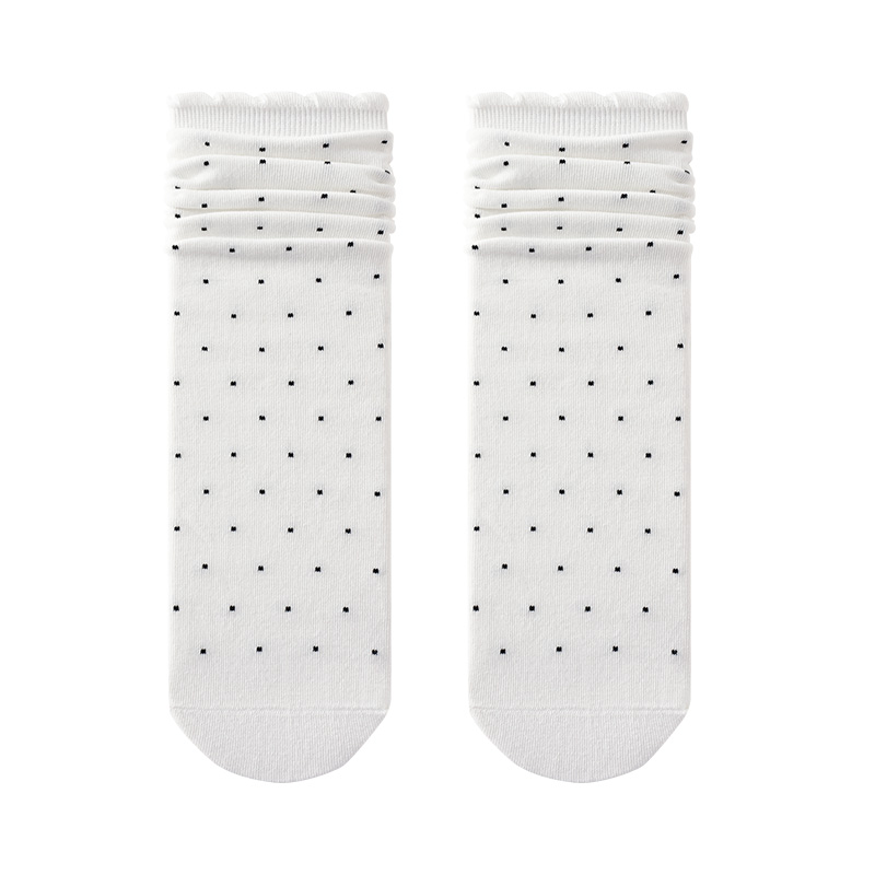 灰色波点袜子女士春秋纯棉中筒袜日系花边miu系配玛丽珍堆堆长袜