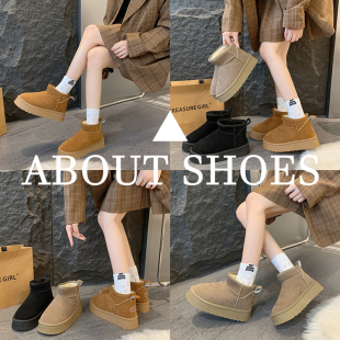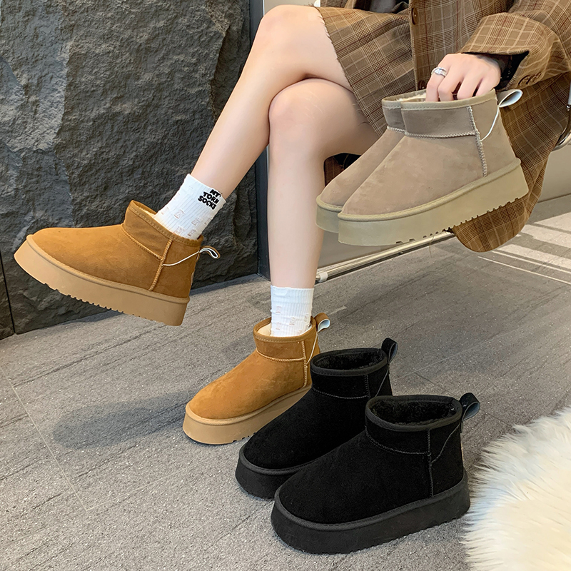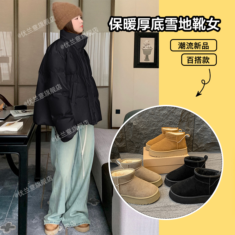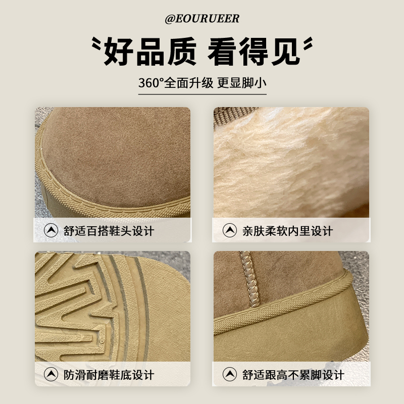厚底增高面包鞋 加绒加厚保暖棉鞋 短筒棉靴子 冬季 雪地靴女2025新款