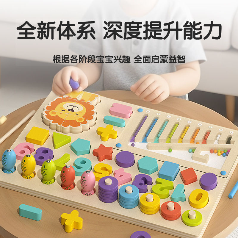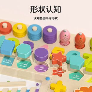 蒙氏早教益智几何套柱形状配对颜色分类对数板拼图1 3岁2积木玩具