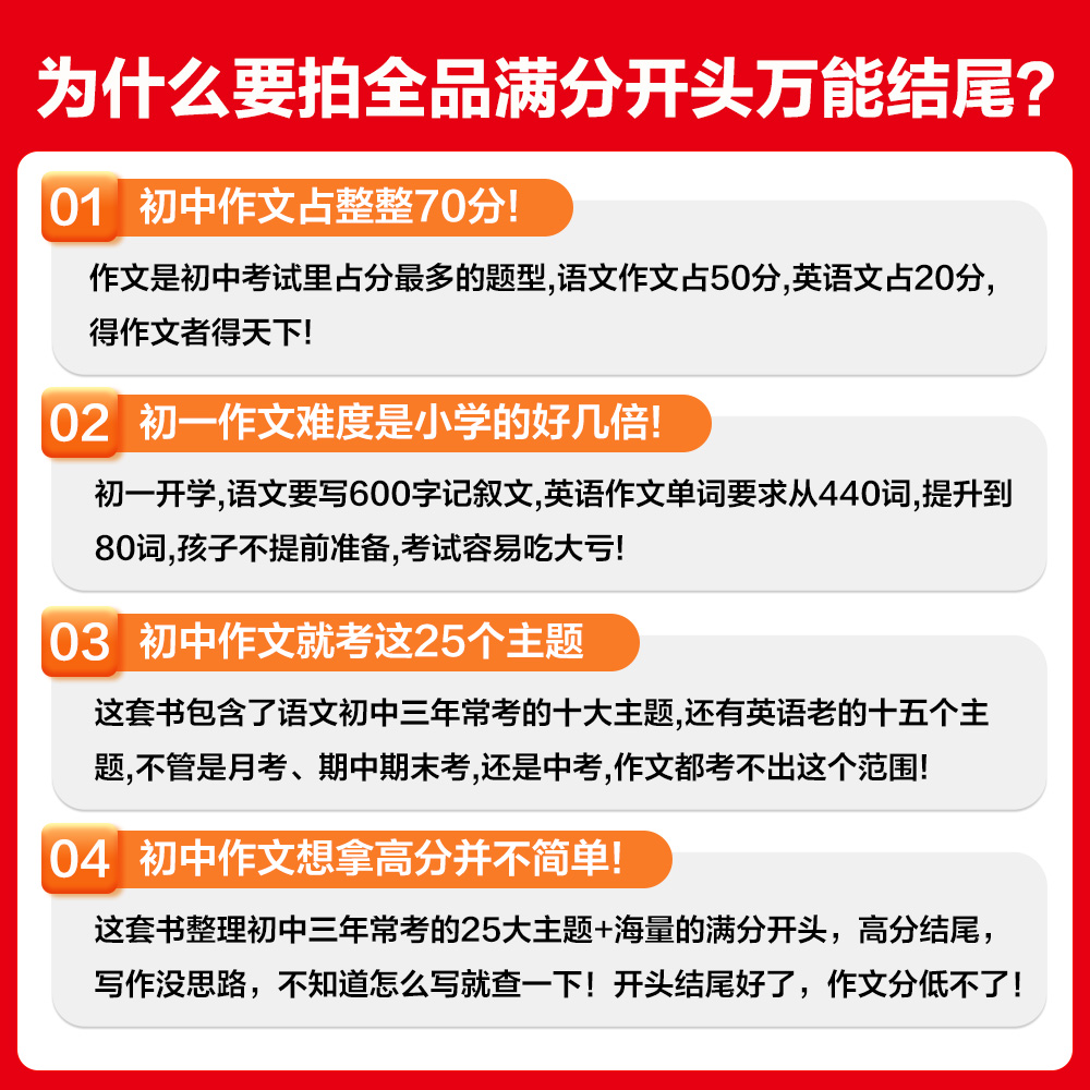 2025新版 万能结尾中考优秀范文 全品初中满分作文分类素材大全高分范文精选初一初二初三语文英语七八九年级考场写作开头模版
