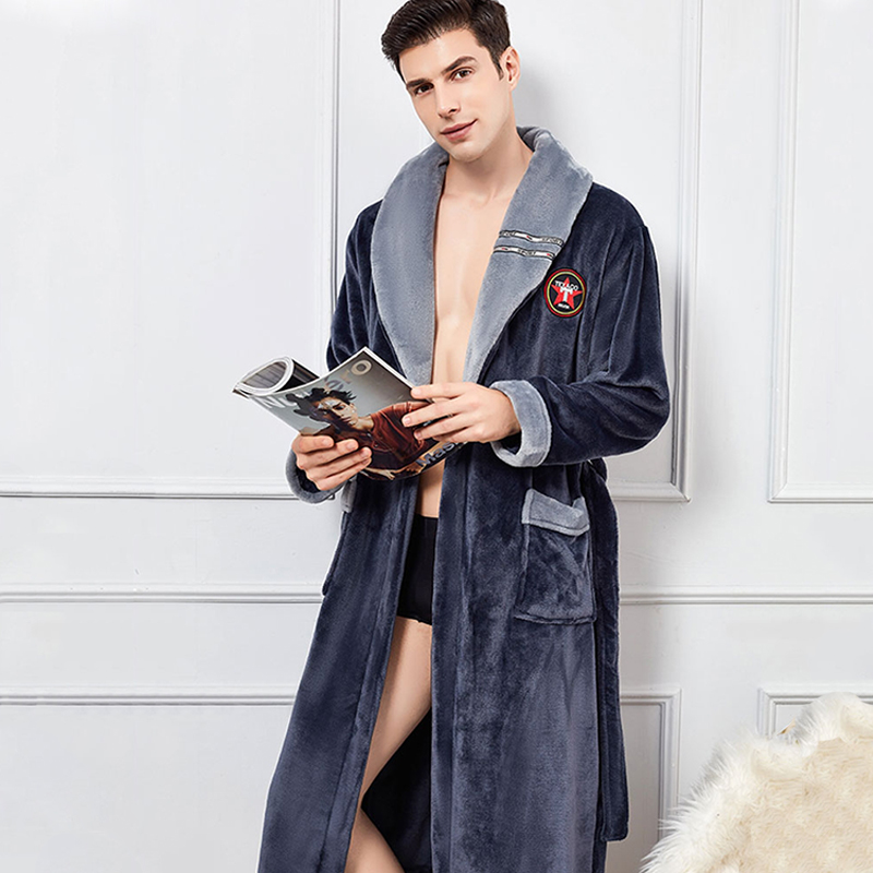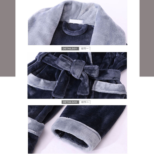 睡衣 加绒长袍浴衣珊瑚绒保暖浴袍男士 法兰绒新款 情侣睡袍男冬季