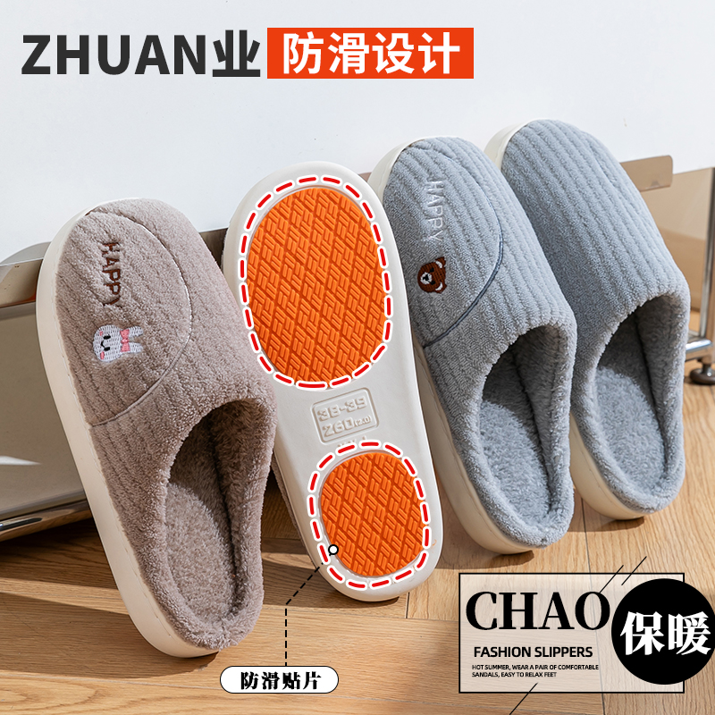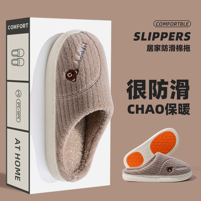 家居保暖家用情侣老人防摔毛绒厚底女 2025新款 防滑棉拖鞋 男秋冬季