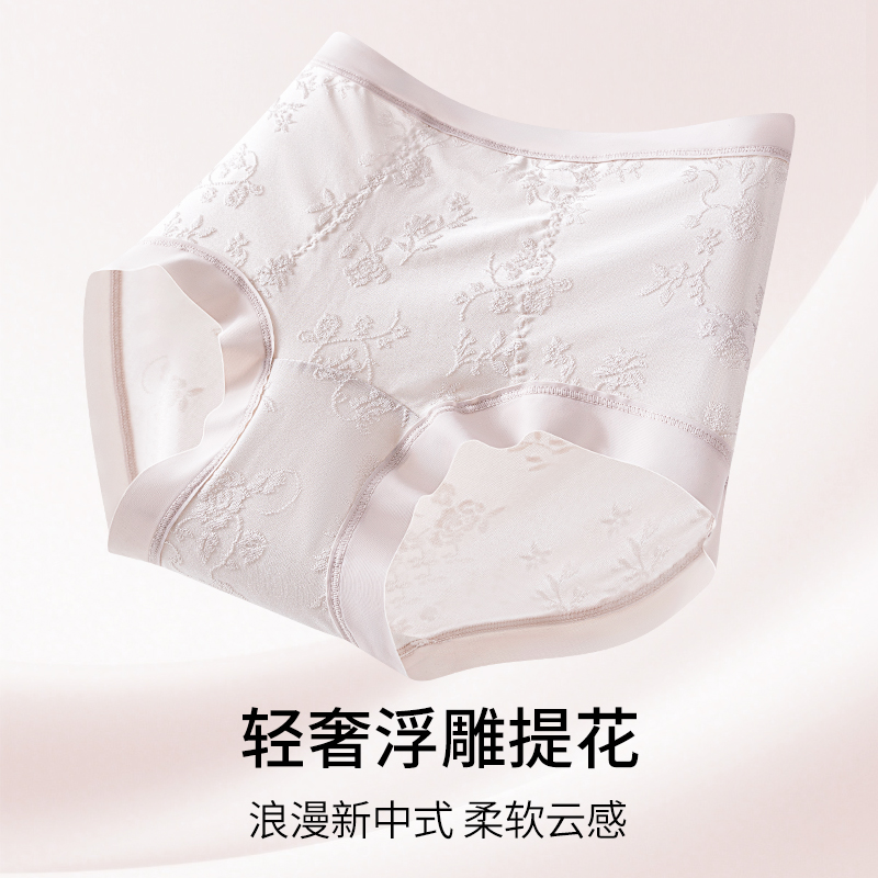 浮雕提花养肤10A桑蚕丝抑菌裆胖MM无痕内裤 芙甜无痕内裤 女新中式