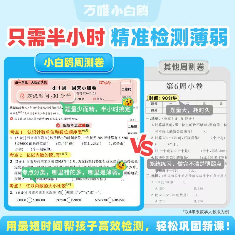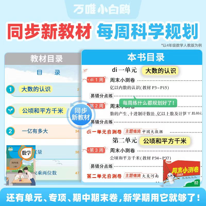 练习册试卷学霸思维训练 同步一二三年级四五六上册教材期中期末单元 2026新版 小白鸥万唯小学语数英周末小测卷半小时25秋季