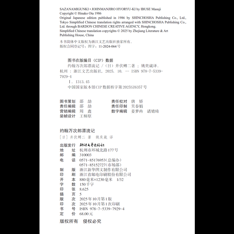 姚奕崴译文学其它浙江文艺出版 井伏鳟二著 社凤凰新华书店旗舰店 日 约翰万次郎漂流记