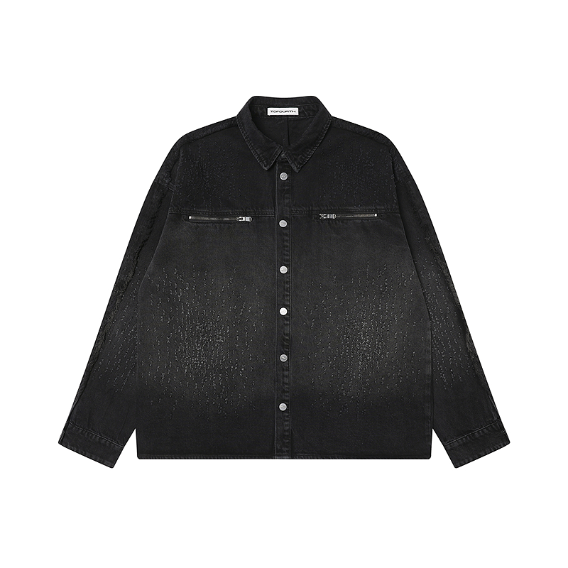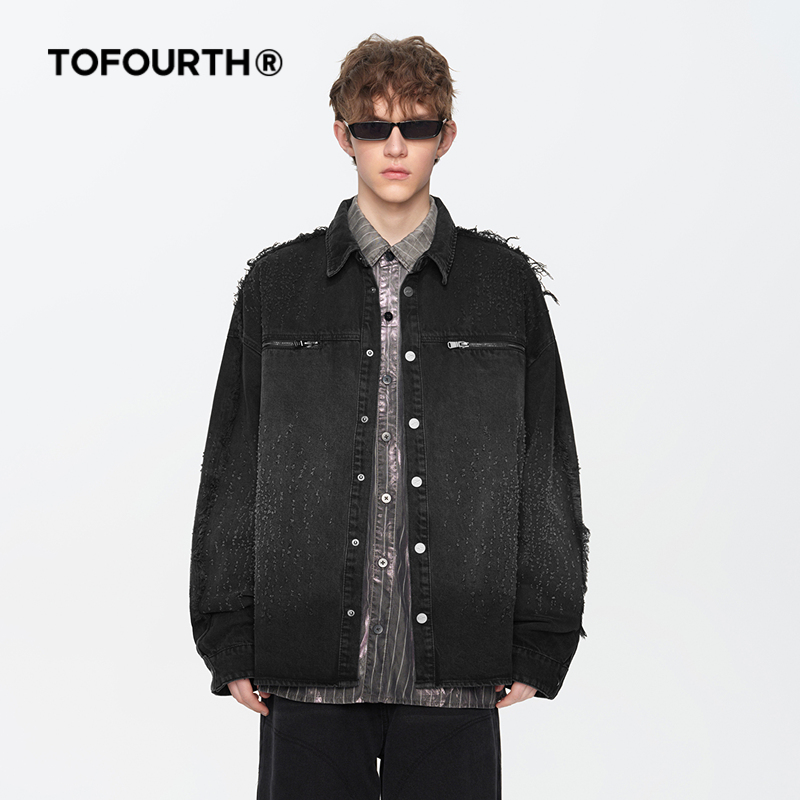 TOFOURTH外套 男女翻领宽松牛仔夹克上衣钩花毛边设计感 商场同款