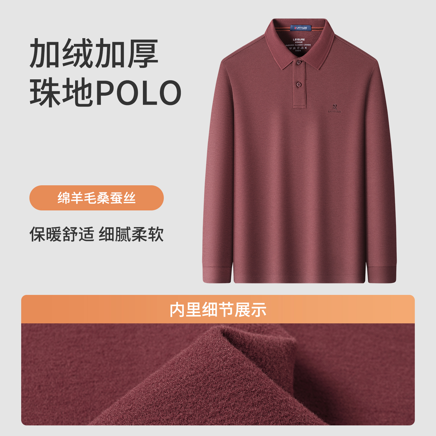 商务长袖 罗蒙男士 POLO衫 2025秋季 宽松纯色翻领T恤衫 新款 纯棉