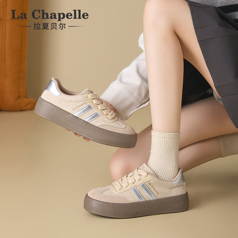 轻便透气休闲板鞋 拉夏贝尔厚底德训鞋 百搭小白鞋 秋季 女2025年新款