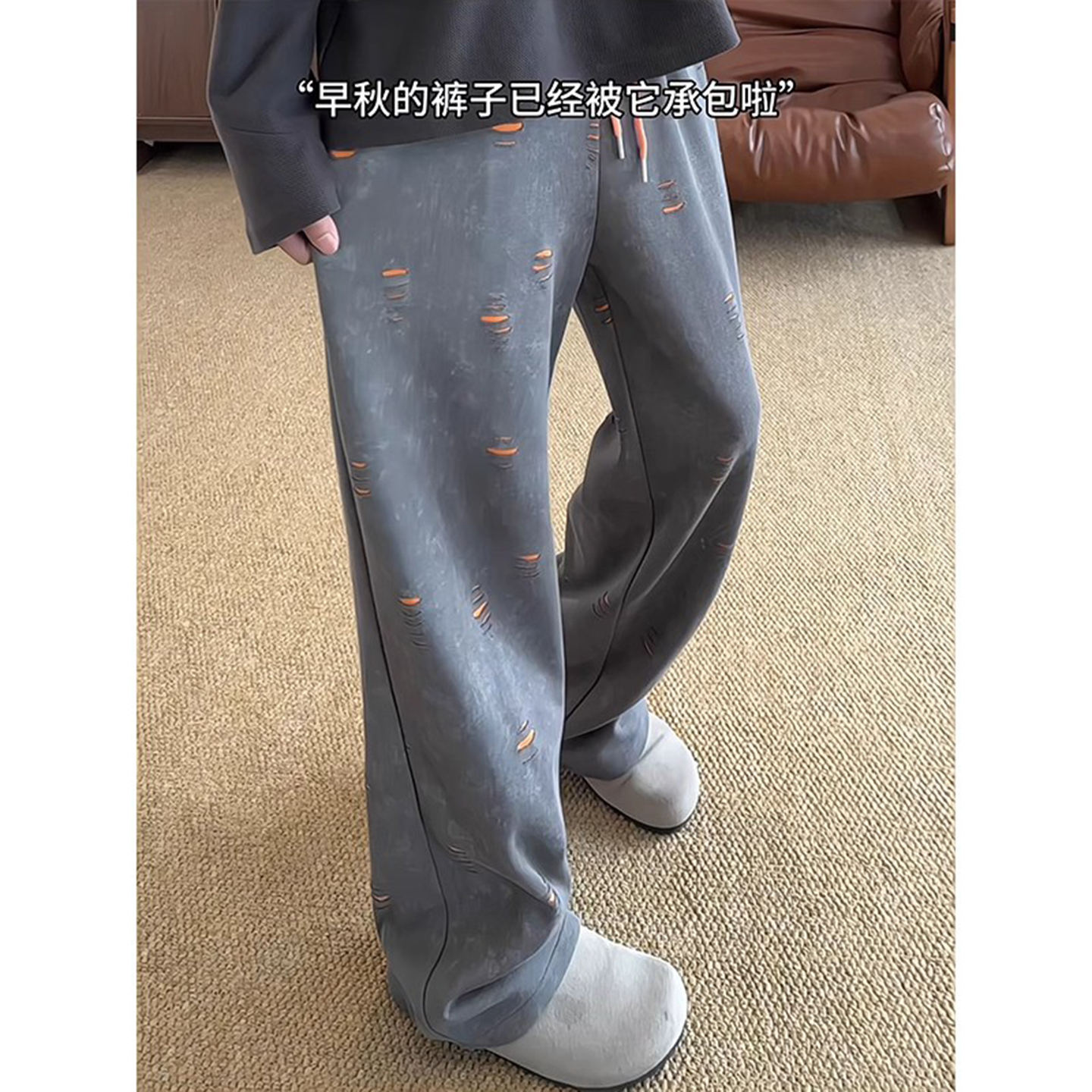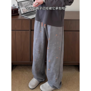 加绒街舞穿搭褶皱宽松休闲长裤 女秋冬季 子 灰色运动卫裤 自然涩美式