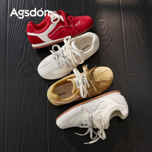 休闲平底运动鞋 奥古狮登红色德训鞋 芭蕾阿甘赛车鞋 秋季 女2025新款