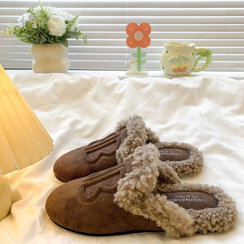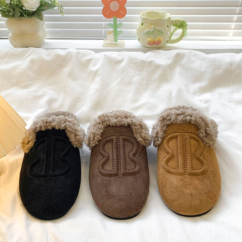 秋冬复古平底棉拖防滑包头半拖 女外穿2025新款 加绒勃肯鞋 毛毛拖鞋