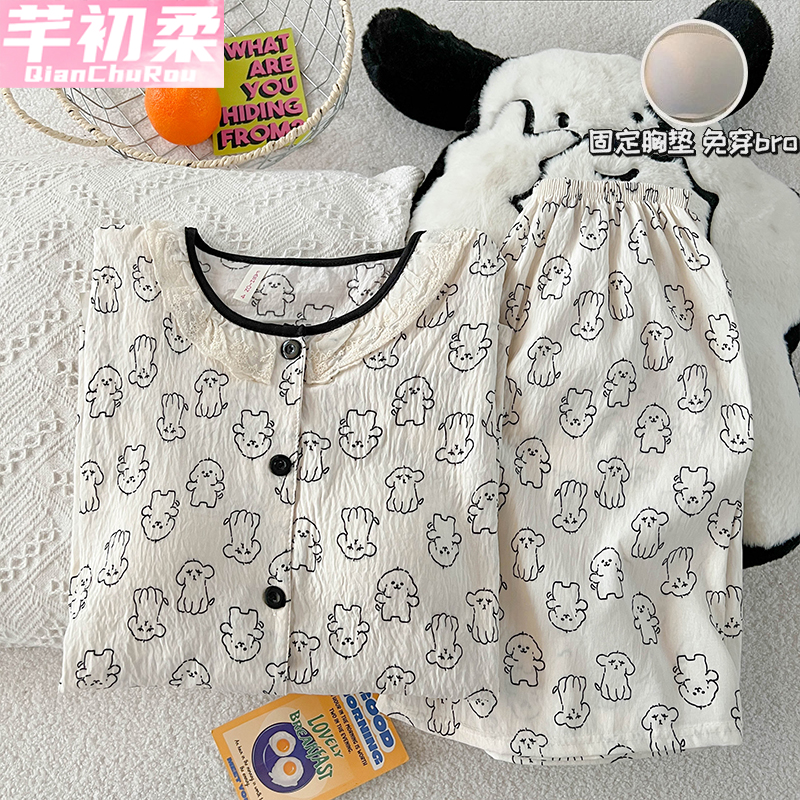 可爱公主风家居服套装 猫人女士云朵棉睡衣春秋款 2025新款 开衫 长袖