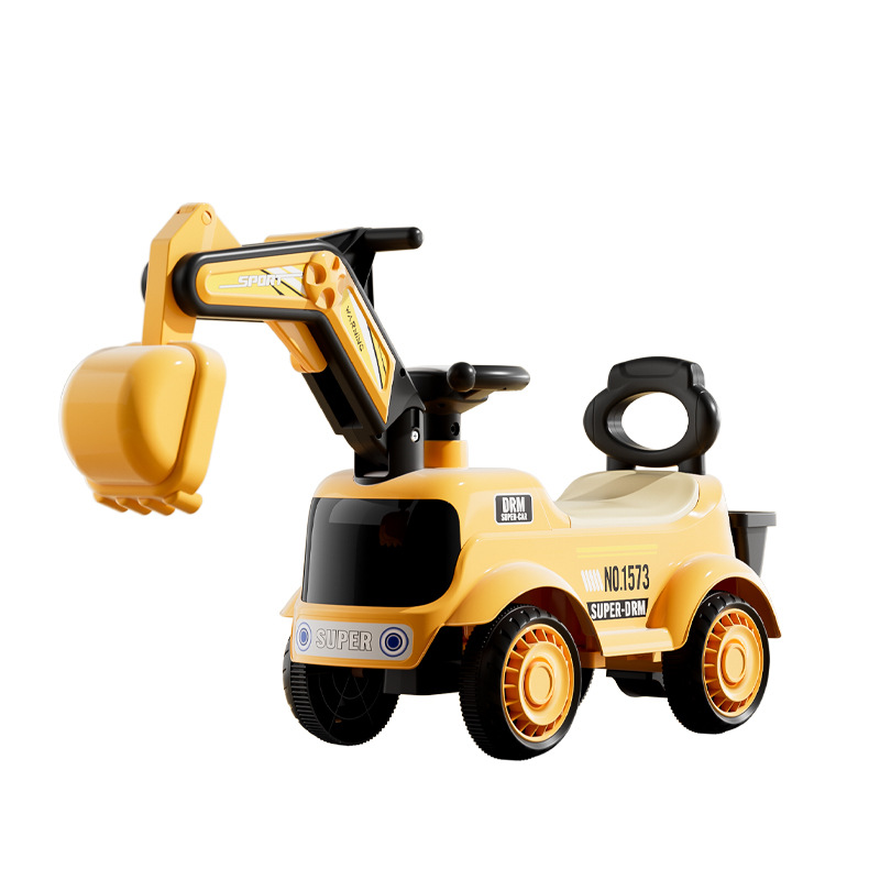 儿童挖掘机带音乐四轮助步车滑行车溜溜车宝宝玩具车可坐人挖土机