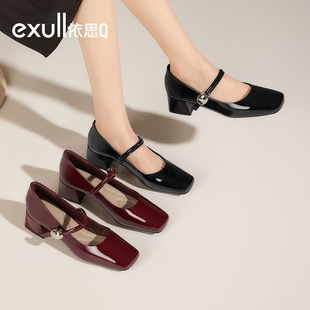 真皮浅口单鞋 新款 子E1T1DCQ5预 女2025秋季 百丽复古粗高跟玛丽珍鞋