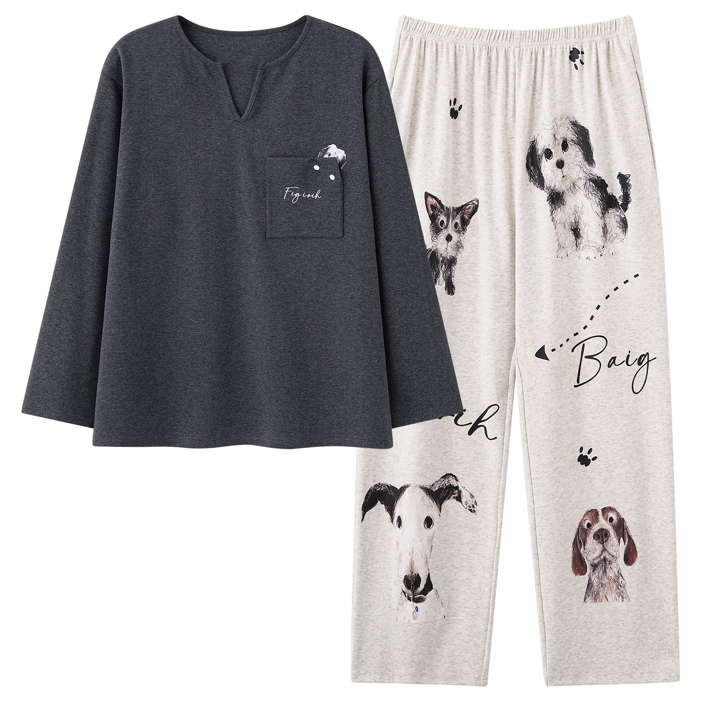 小狗系列条纹满印情侣家居服套装 Gukoo 果壳睡衣女春秋款
