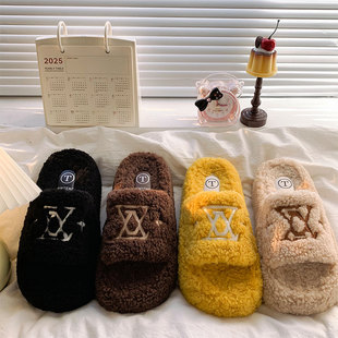 ins潮鞋 韩版 秋冬季 厚底棉拖鞋 潮 毛毛拖鞋 子春夏季 女外穿2025新款