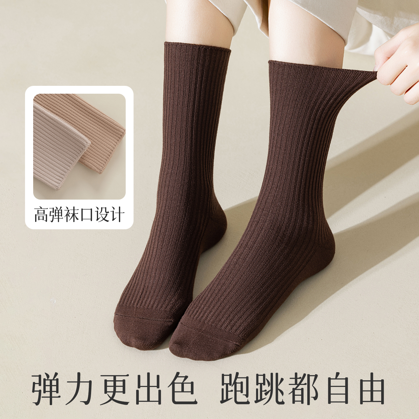 100%纯棉袜子女款 中筒袜女士双针抗起球防臭美拉德堆堆长袜 春秋季