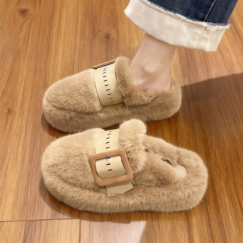 家居室内保暖毛毛绒厚底月子拖鞋 2025新款 女士秋冬季 踩屎感棉拖鞋