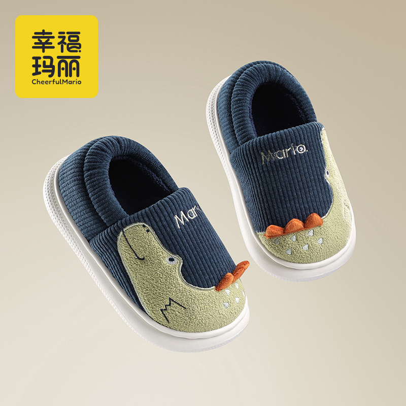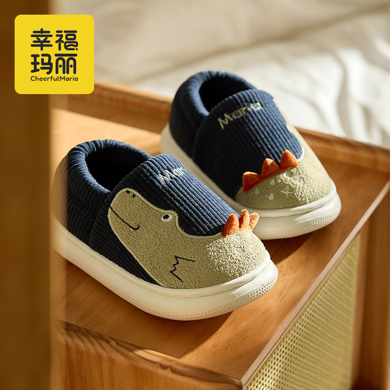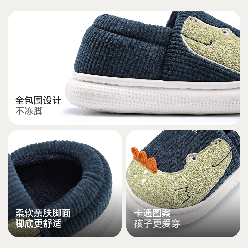室内包跟保暖男孩中大童宝宝家居毛绒宝宝棉鞋 儿童棉拖鞋 男童冬季