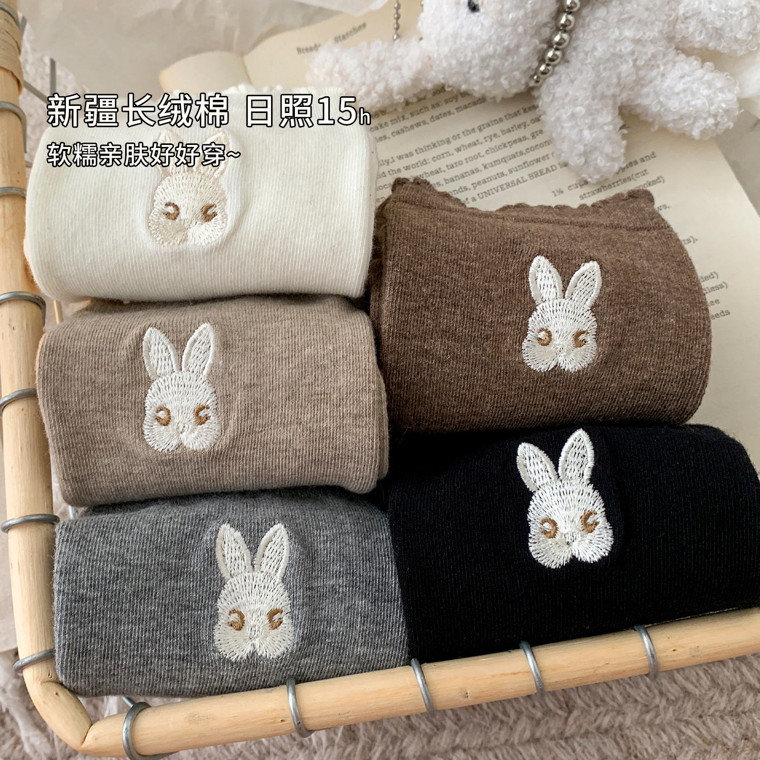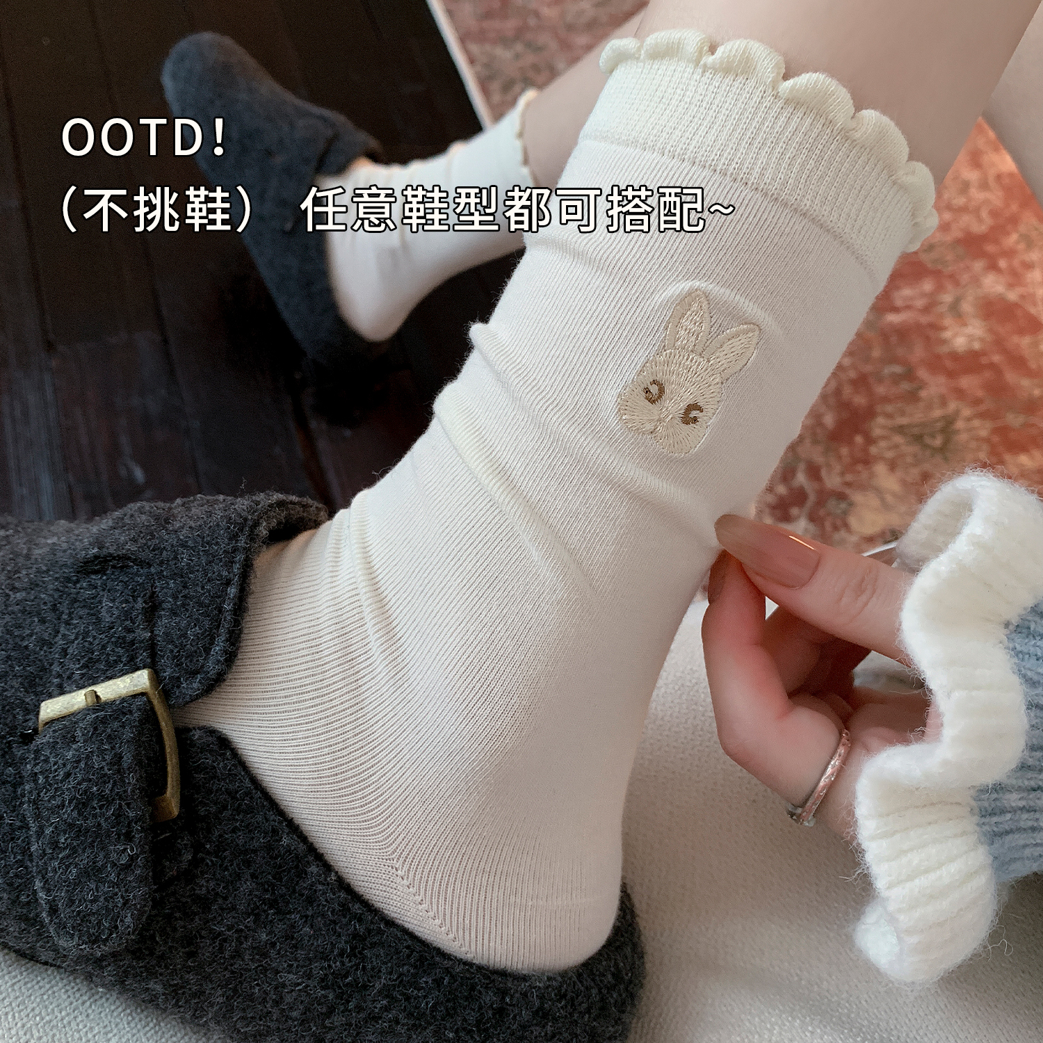 美拉德袜子女春秋纯棉花边中筒袜可爱刺绣咖色月子堆堆袜配勃肯鞋