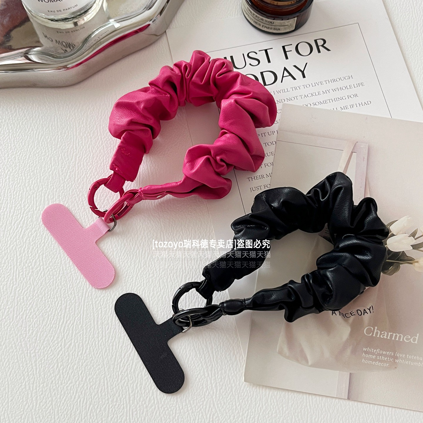 超好看皮质手机挂绳手腕挂件独特皱褶松紧弹力腕带手绳ins时尚 链包包钥匙扣相机垫片皮绳壳 网红挂饰高级新款