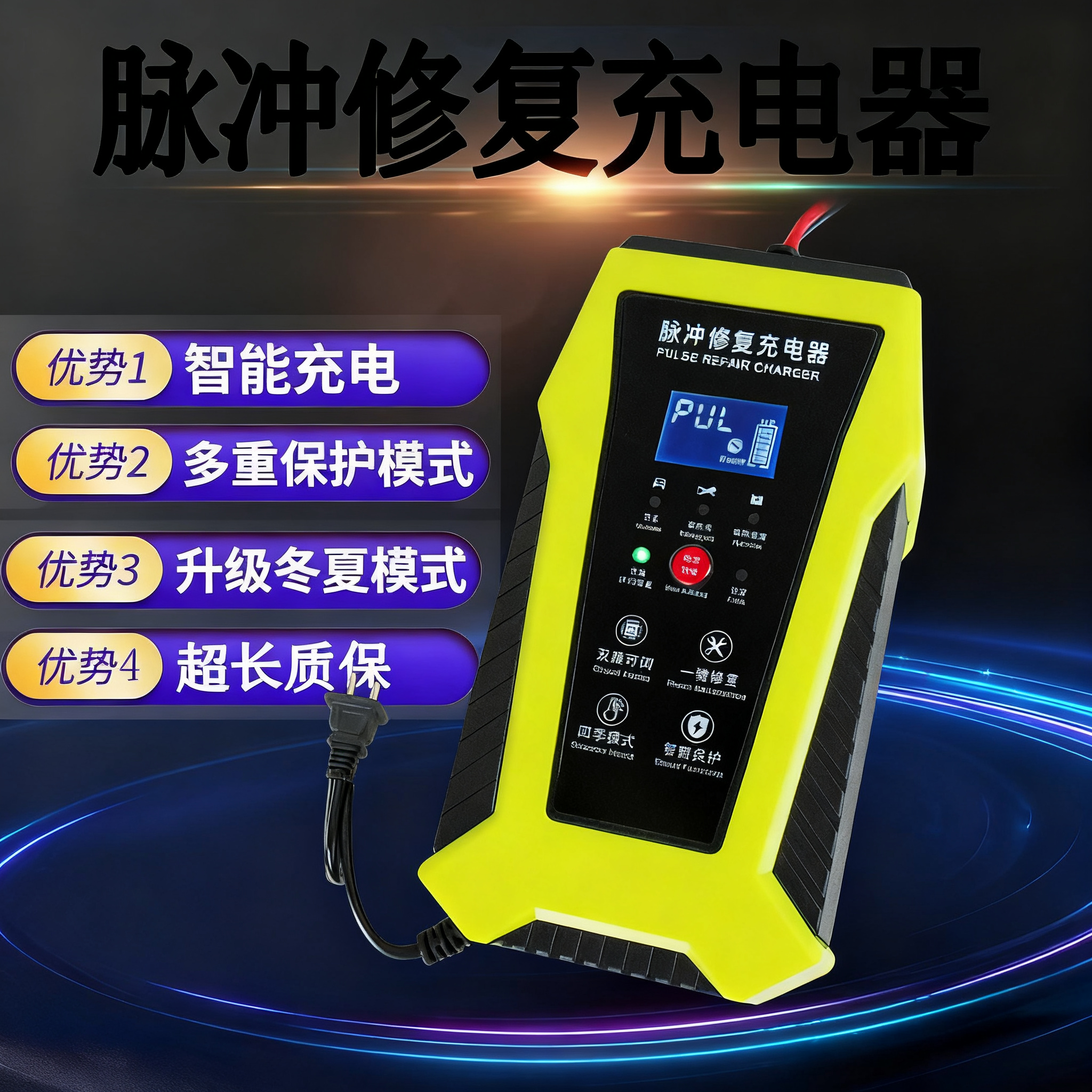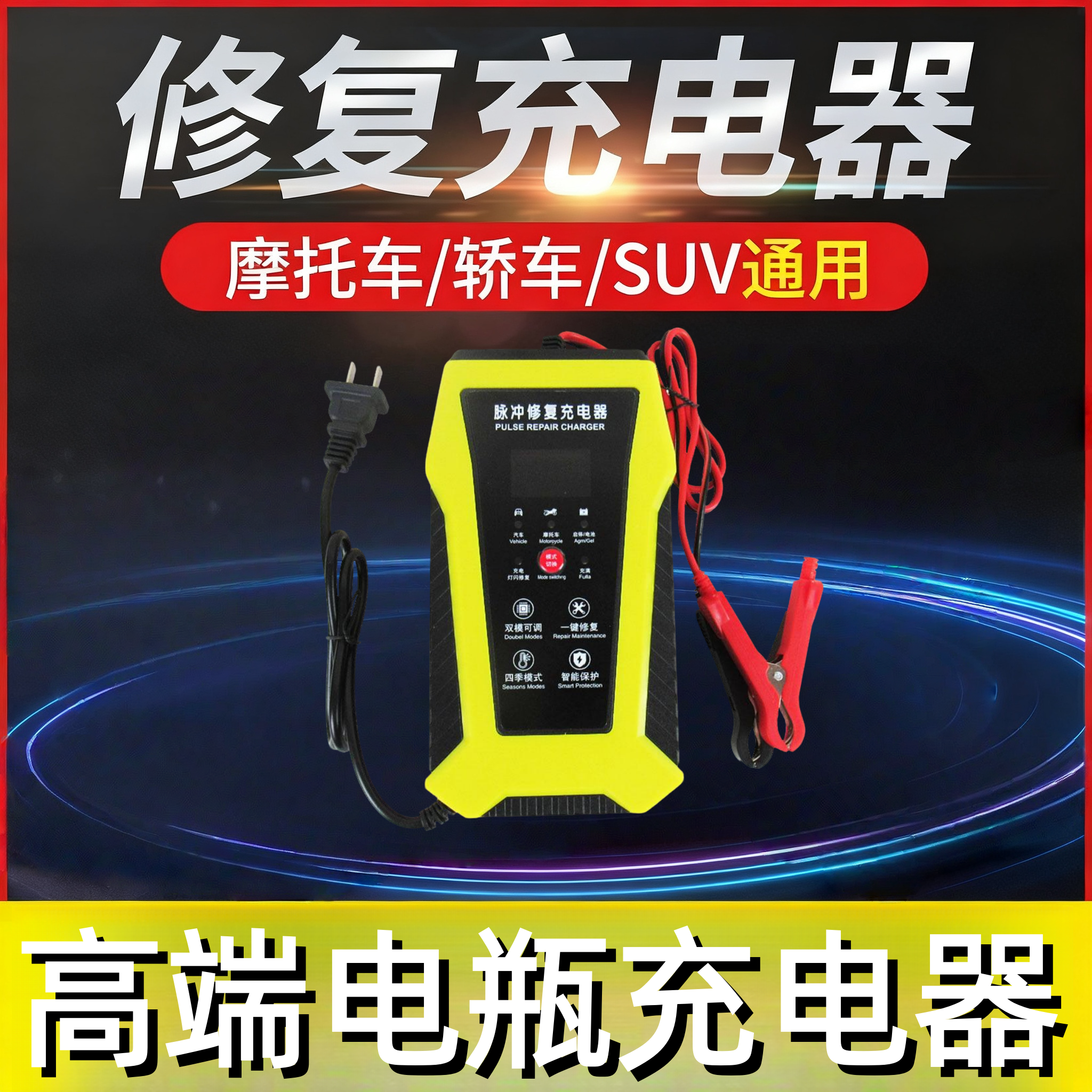高端电瓶多功能12v24v通用充电器铅酸蓄电池智能修复汽车摩托通用