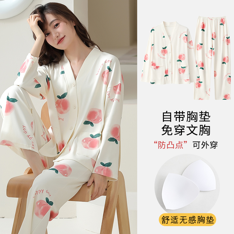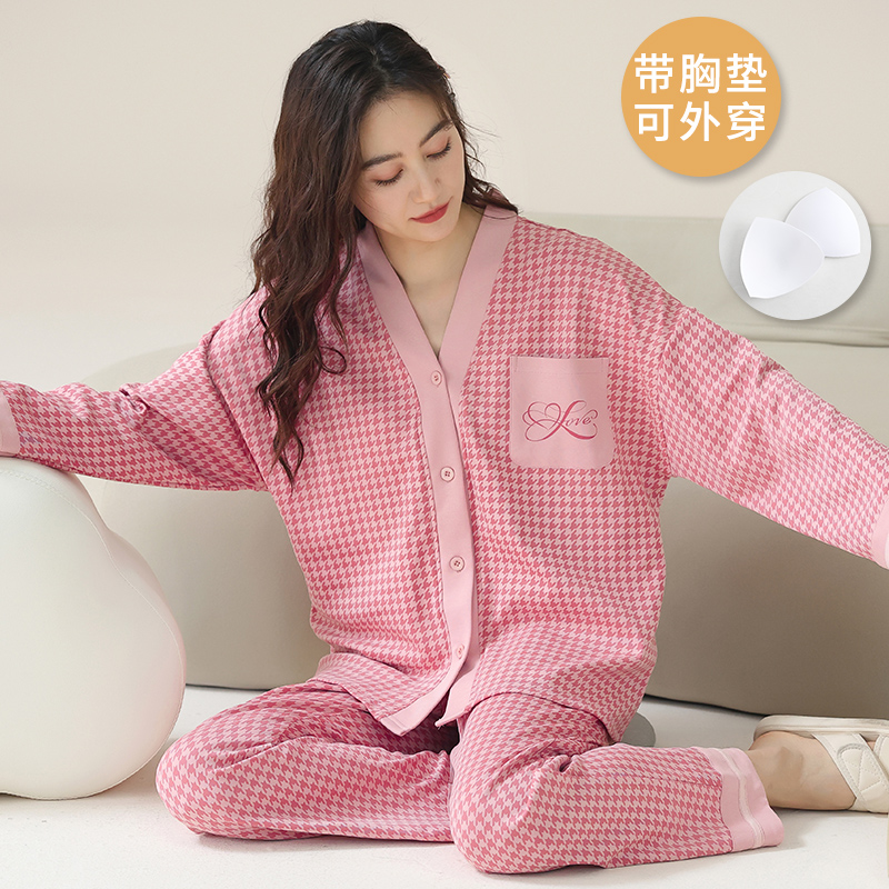 长袖 全棉大码 套装 女款 家居服 简约休闲秋季 芬腾春秋睡衣女纯棉开衫