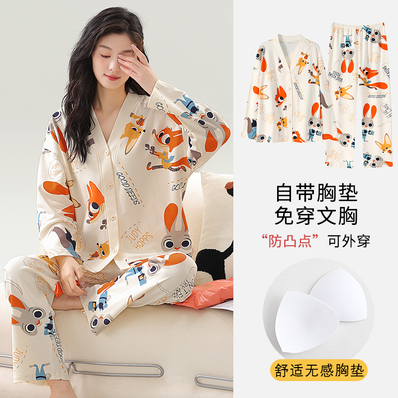 甜美女士家居服套装 可爱卡通印花新款 果壳睡衣女春秋款 Gukoo