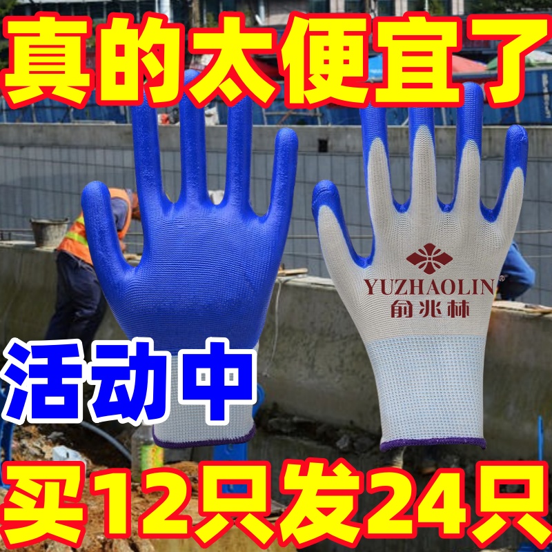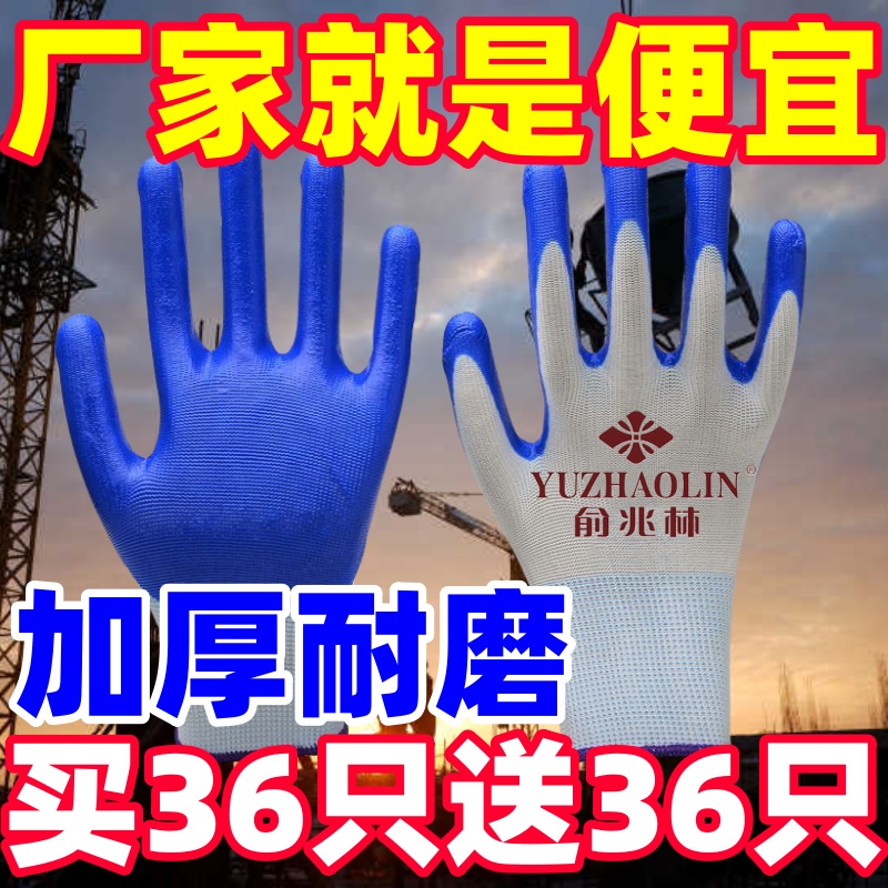 正品 丁腈加厚防护手套维修工地劳保耐磨耐用防油工地干活劳动建筑