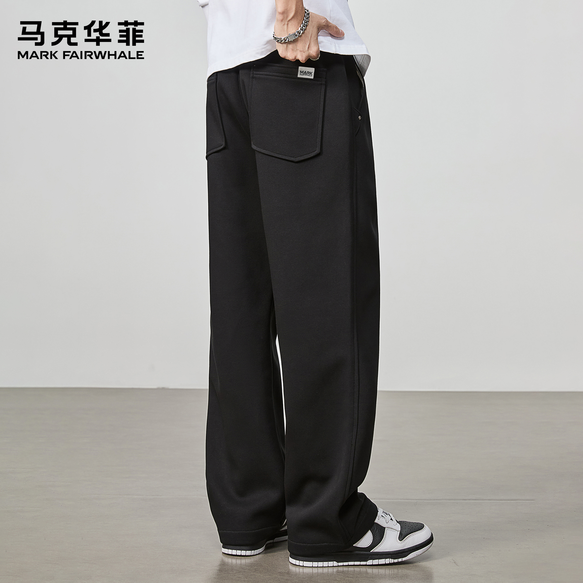 复古黑色cleanfit宽松抽绳直筒运动裤 潮牌美式 男新款 马克华菲卫裤