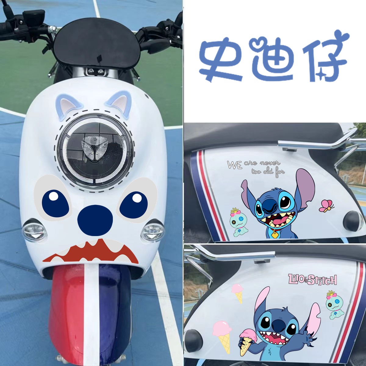 电动车贴纸可爱史迪仔史迪奇卡通装 饰贴画遮挡划痕贴爱玛晴天雅迪