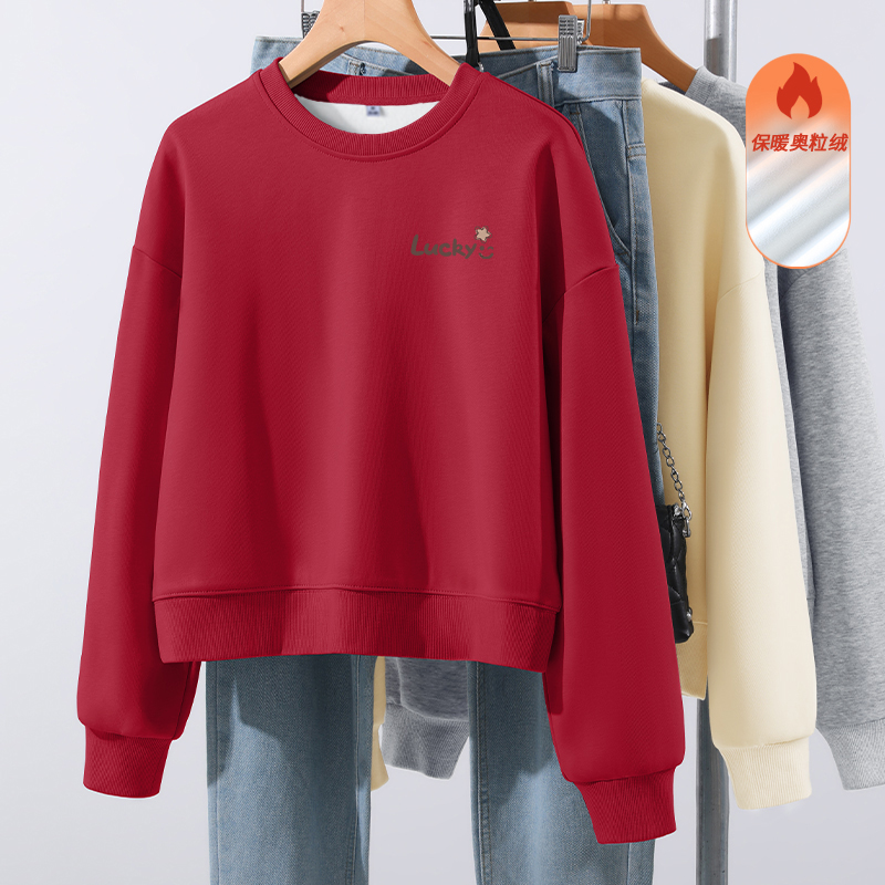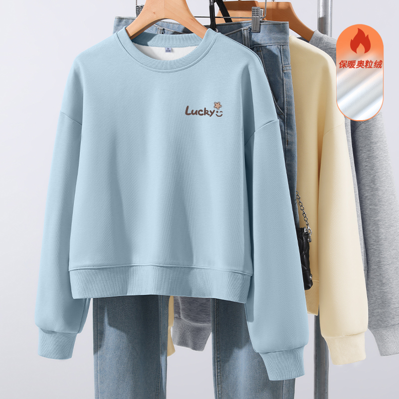 上衣外套 青少年加绒加厚短款 NEE真维斯圆领卫衣女2025新款 秋冬季