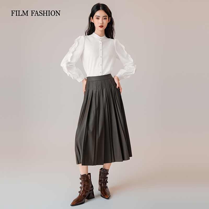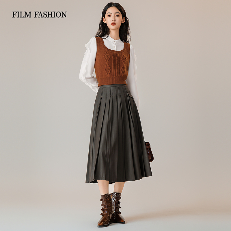 长半裙半身裙长款 新款 女士好看灰色高级身材复古 冬季 一电影一时装