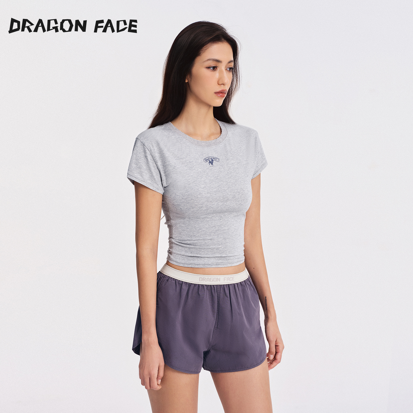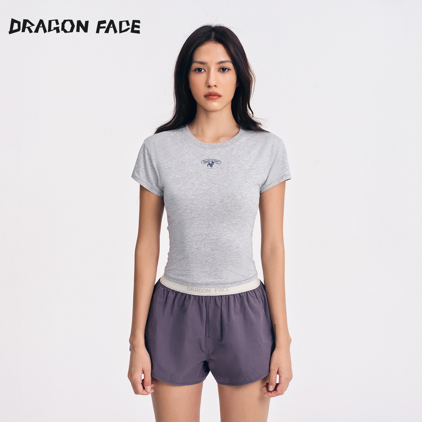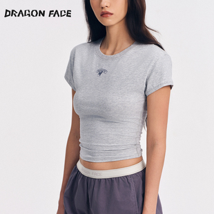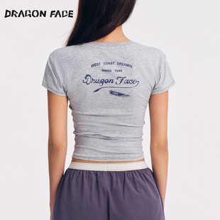 FACE 龙脸DRAGON 浅花灰色平纹印花T恤宽肩窄腰T恤 王玉雯同款