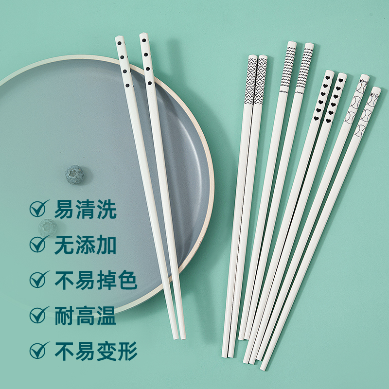 合金仿陶瓷筷子家用高档套装 高颜值餐具耐高温赫本风防霉分食抗菌