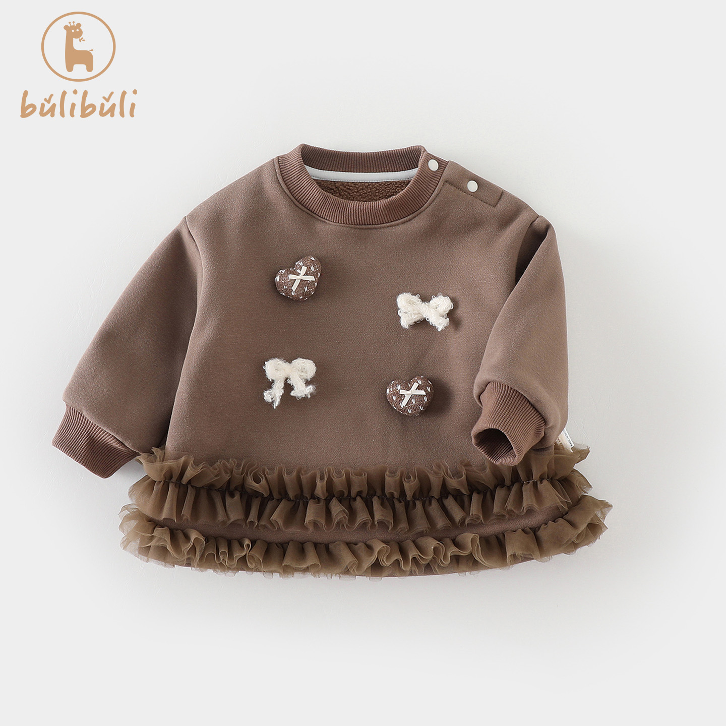婴幼童衣服 女宝宝深秋初冬上衣秋冬季 女童加绒卫衣秋冬款 2025新款