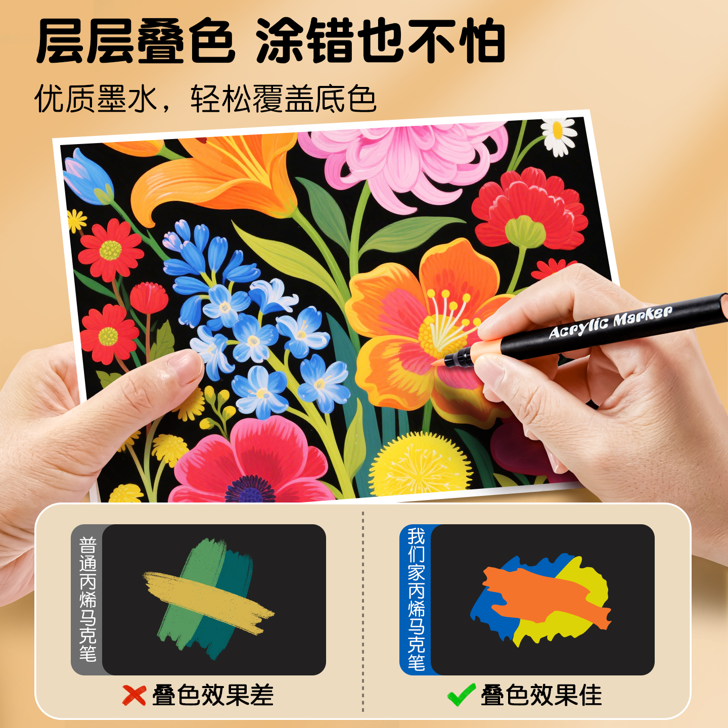 晨光丙烯马克笔不透色可叠色小学生专用儿童美术DIY彩色笔芯水彩笔硬软头可水洗幼儿园涂鸦防水直液式 丙烯笔