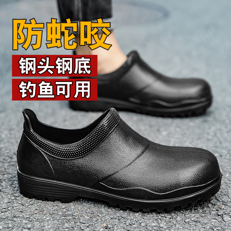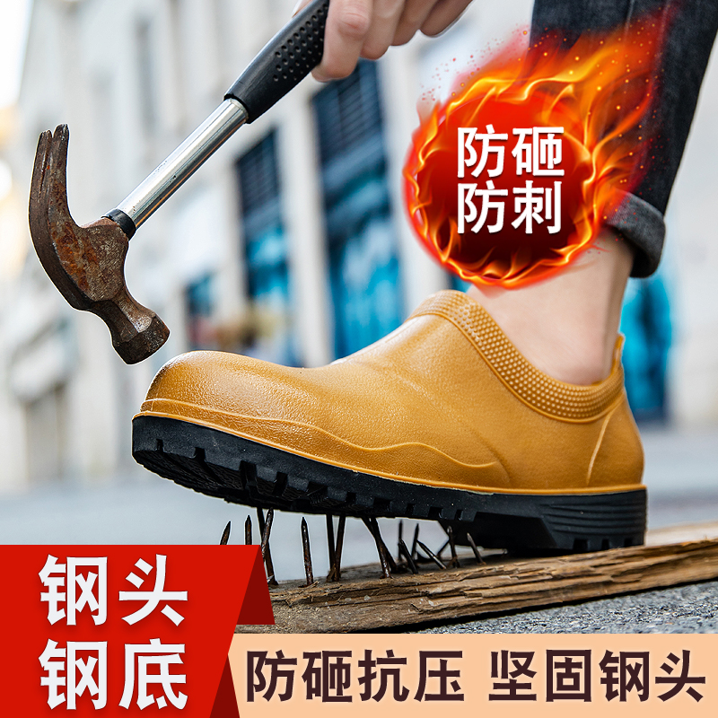 钢头钢底低帮雨鞋 防砸防刺穿厚底耐磨雨靴无里布速干防臭劳保水鞋