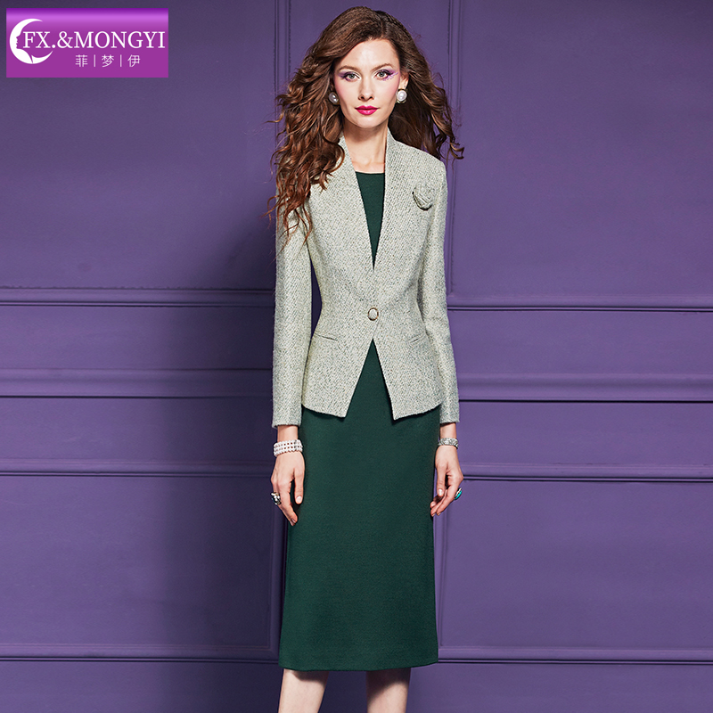 复古优雅大方气质无袖 裙女冬季 连衣裙短外套 套装 菲梦伊含羊毛西装
