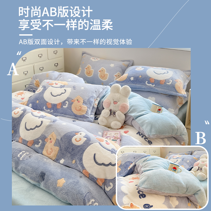 无印良品全棉床单学生宿舍纯棉卡通儿童被套秋冬三件套床上用品