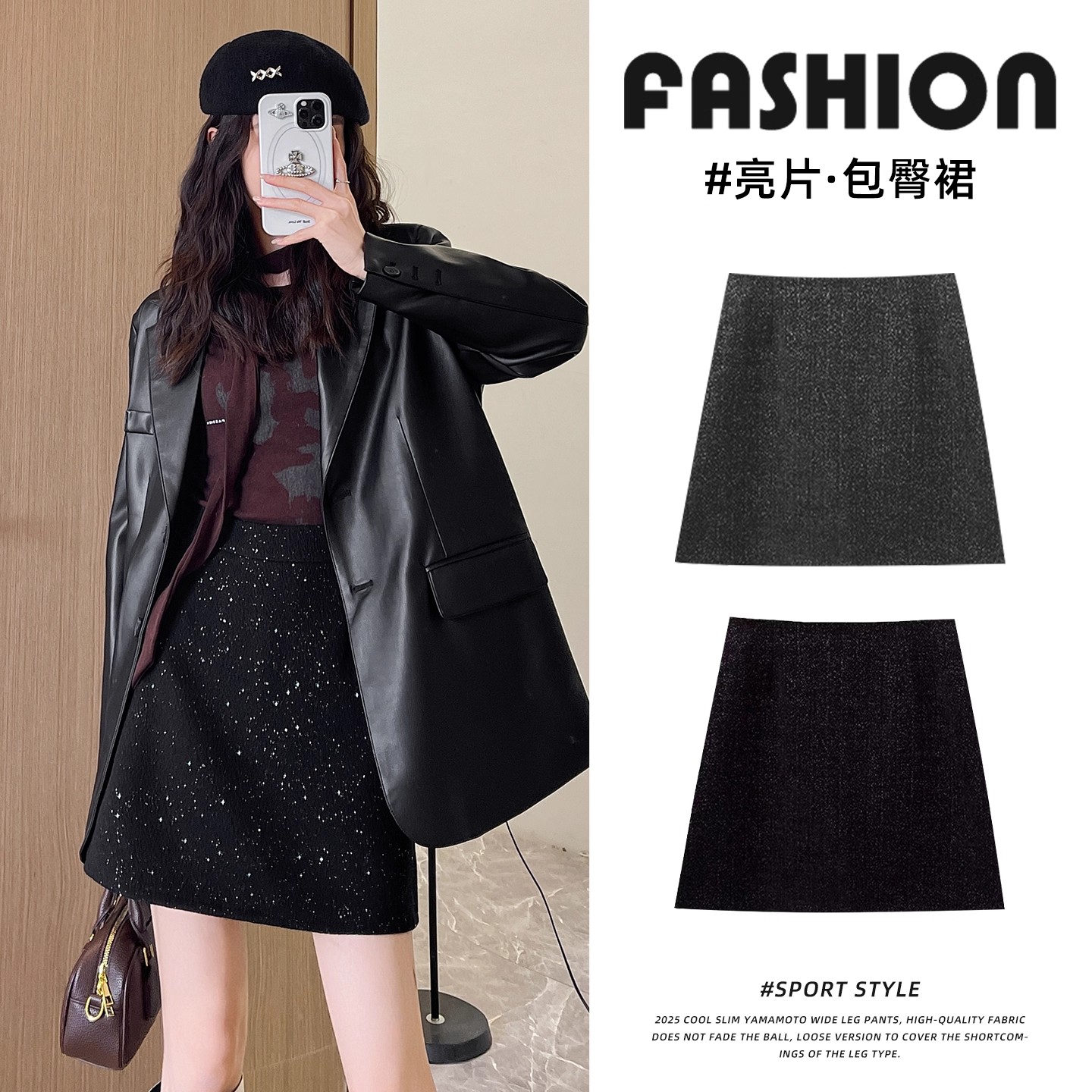 黑色亮片半身裙女秋季 高腰显瘦A字包臀短裙小个子气质裙 2025新款