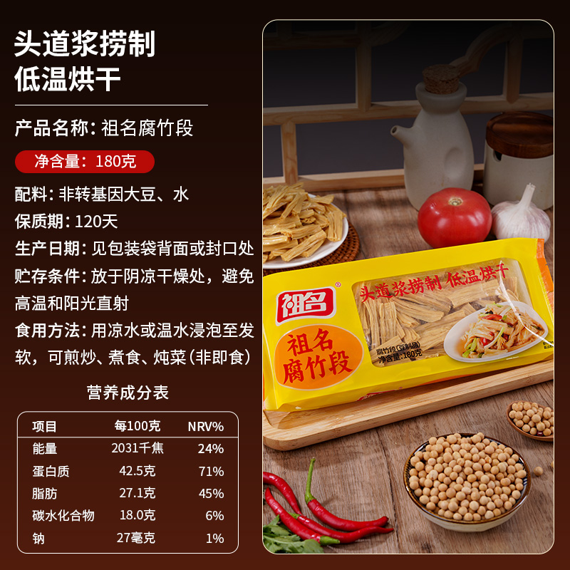 祖名腐竹段干货新鲜头道捞制腐竹段火锅凉拌配菜批发180g 2袋