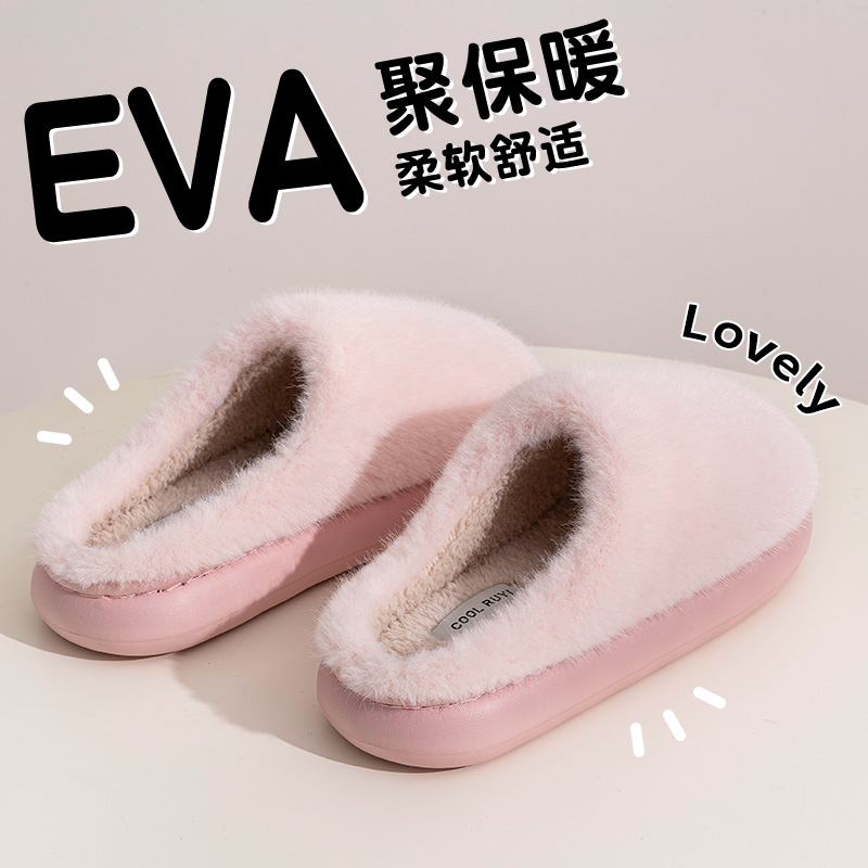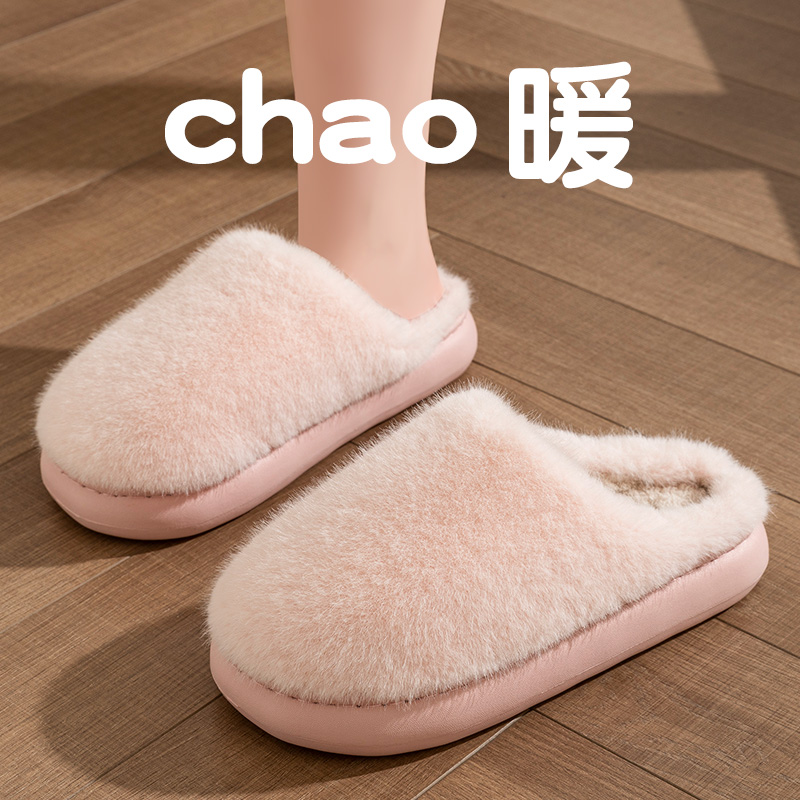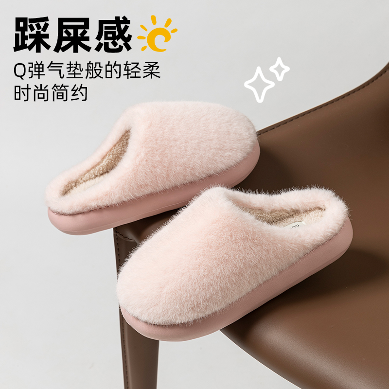毛绒绒保暖居家室内踩屎感情侣月子鞋 女士2025新款 男 棉拖鞋 秋冬季