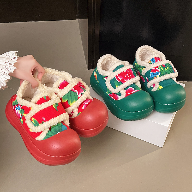 外穿 室外厚底防滑保暖毛毛东北大花棉鞋 2025年新款 包跟棉拖女冬季