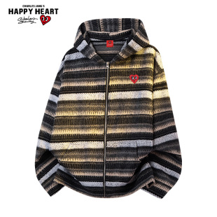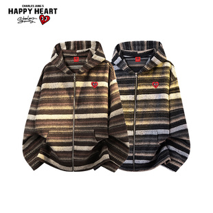 新款 查尔斯桃心 毛衣男秋冬季 复古开衫 百搭潮牌情侣连帽外套 美式