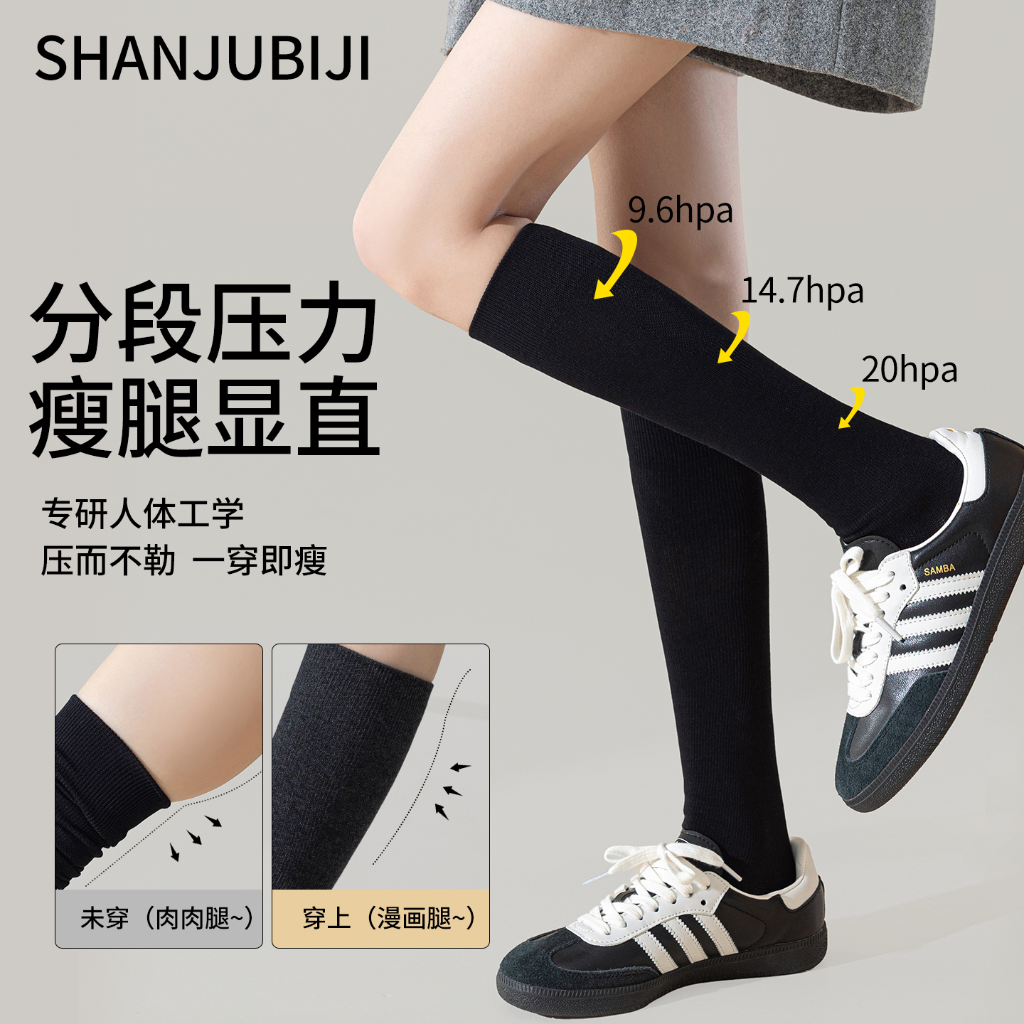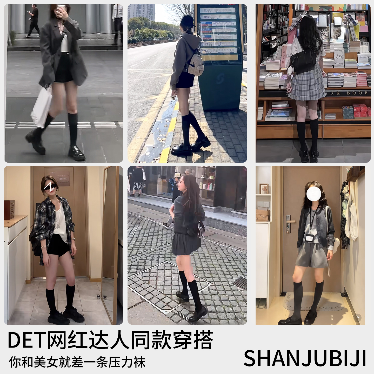 配小皮鞋 黑色袜子女秋季 压力袜女款 爆款 无骨JK长袜 小腿袜2025新款
