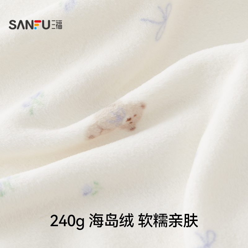 趣味柔软家居服长裤 萌趣印花海岛绒单裤 满版 507845 三福女冬季
