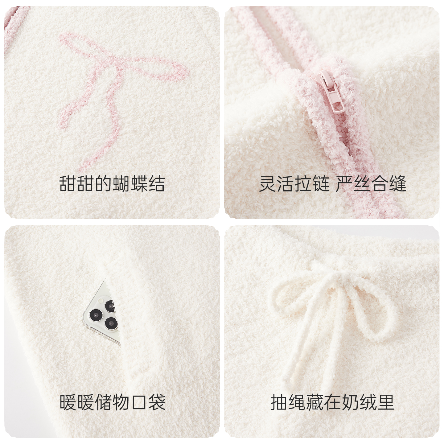 BE冬季 拉链可外穿珊瑚绒秋冬加绒家居服冬天 睡衣女冬厚半边绒长袖