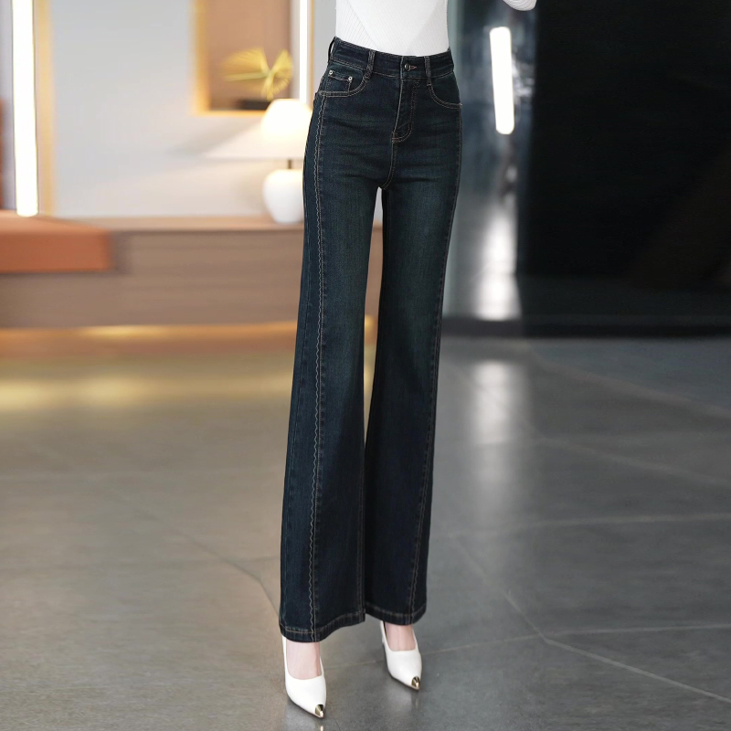 经典 女装 修身 高腰休闲通勤喇叭裤 小黑裤 黑色牛仔裤 LILY2025秋新款
