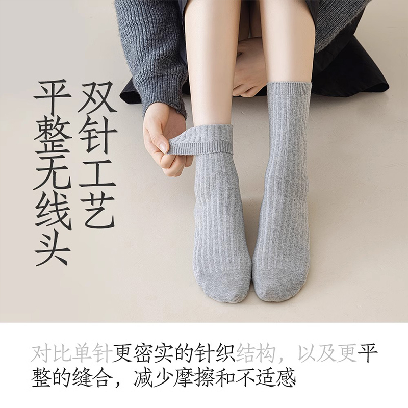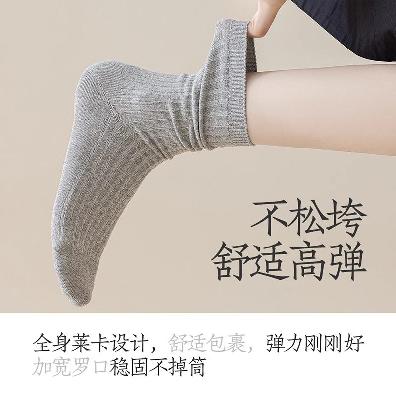 灰色堆堆袜子女中筒袜春秋款 全棉无骨长袜 纯棉纱线月子袜2025新款